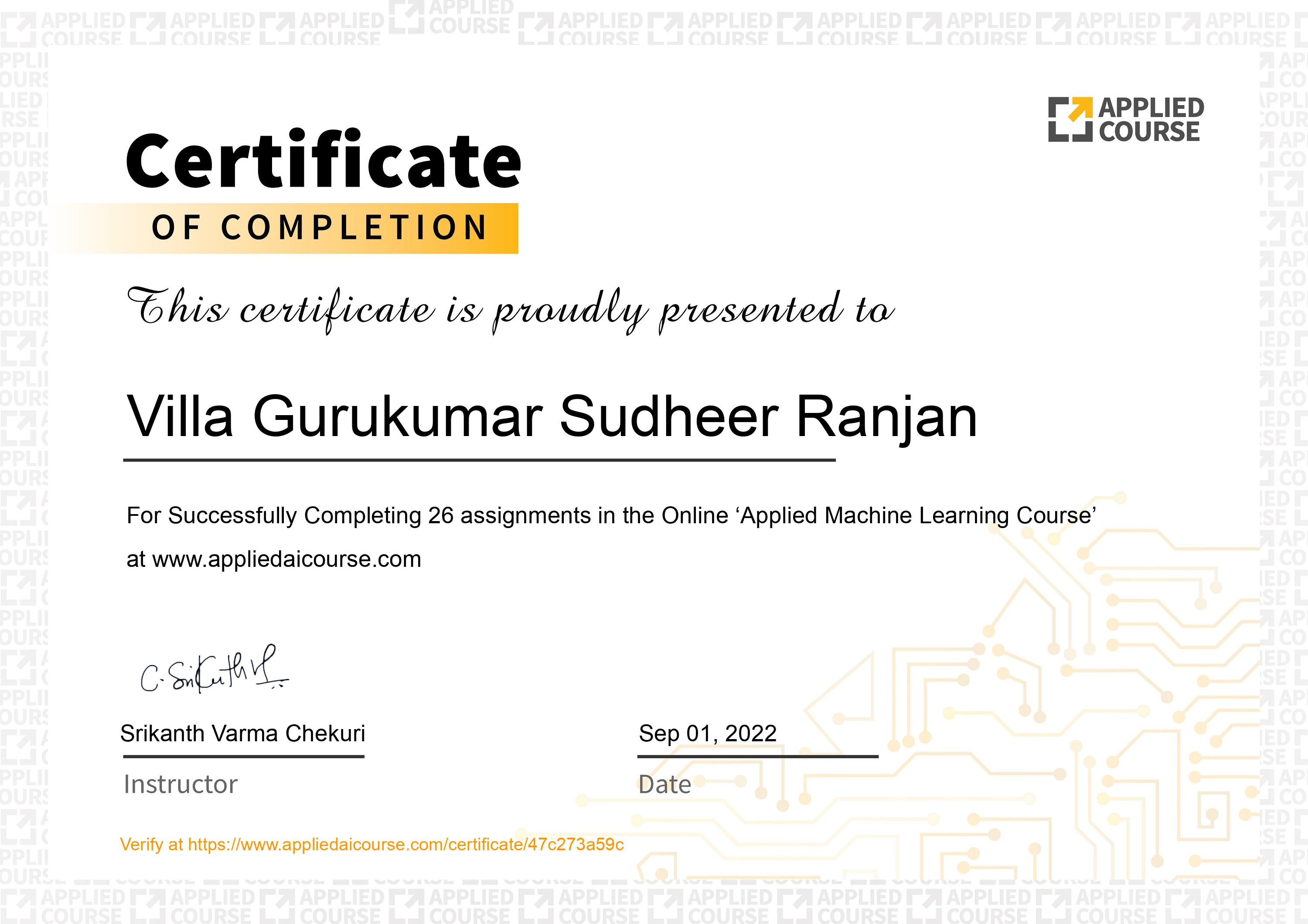 | Applied Machine Learning Course | View Certificate |